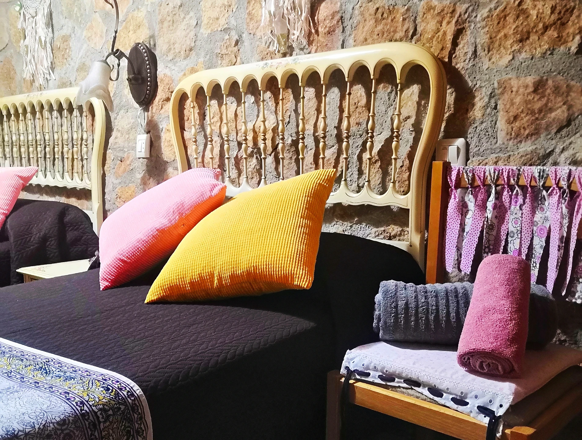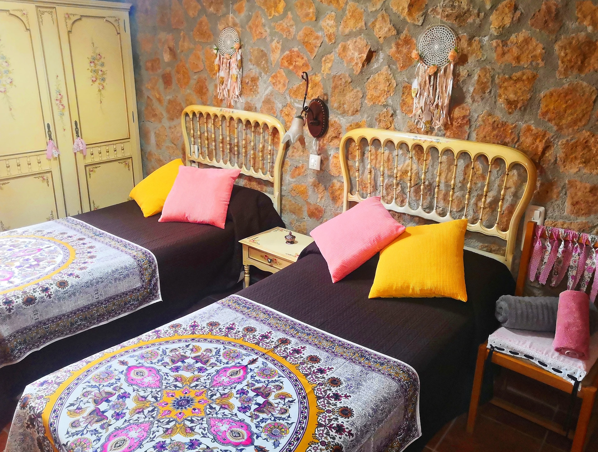 Una habitación doble con cama de matrimonio, perfecta para un descanso cómodo y tranquilo. También disponemos de una habitación doble con dos camas individuales, ideal para quienes prefieren camas separadas.