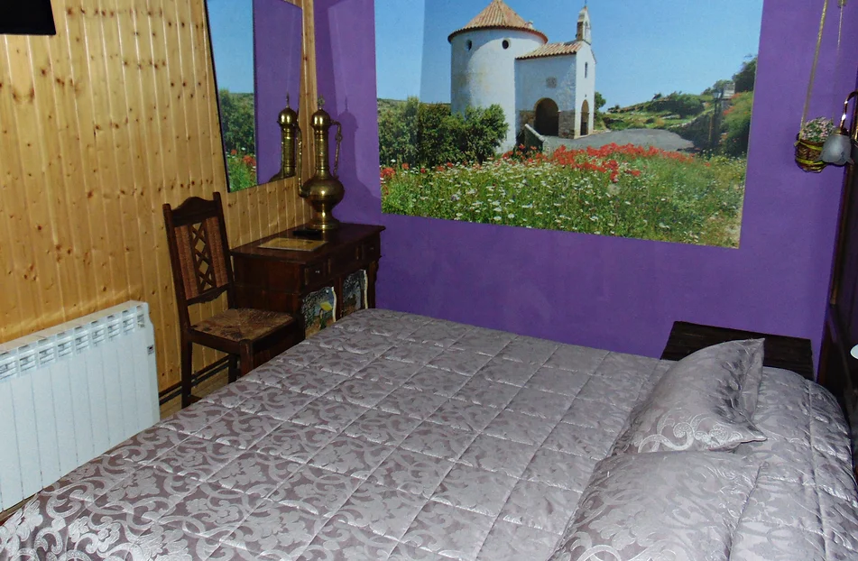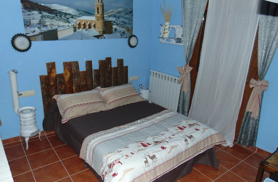 Disfruta de una habitación doble con cama de matrimonio en nuestro alojamiento rural en Teruel, diseñada para ofrecerte una estancia cómoda y relajante. Con todas las comodidades necesarias, es el lugar ideal para una escapada tranquila.